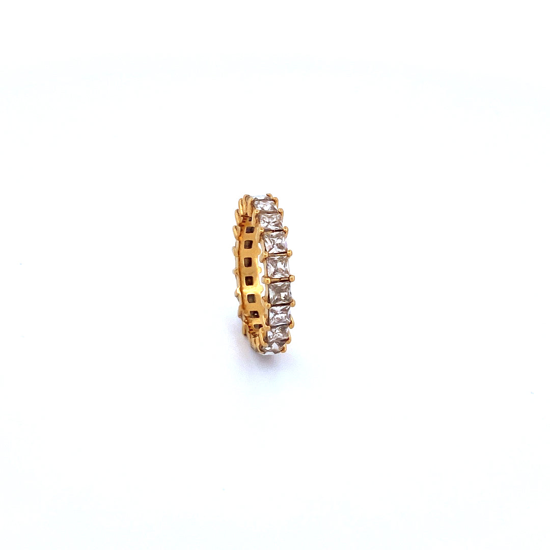 Die ästhetisch gearbeiteten Facetten in harmonischer Kombination aus Baguette Steinen spiegeln das Licht wie Eis & bewirken einen flammenden Regenbogen- Effekt. Mit dem Ring wirst du die inspirierende Wirkung auf dich & dein Umfeld spüren.