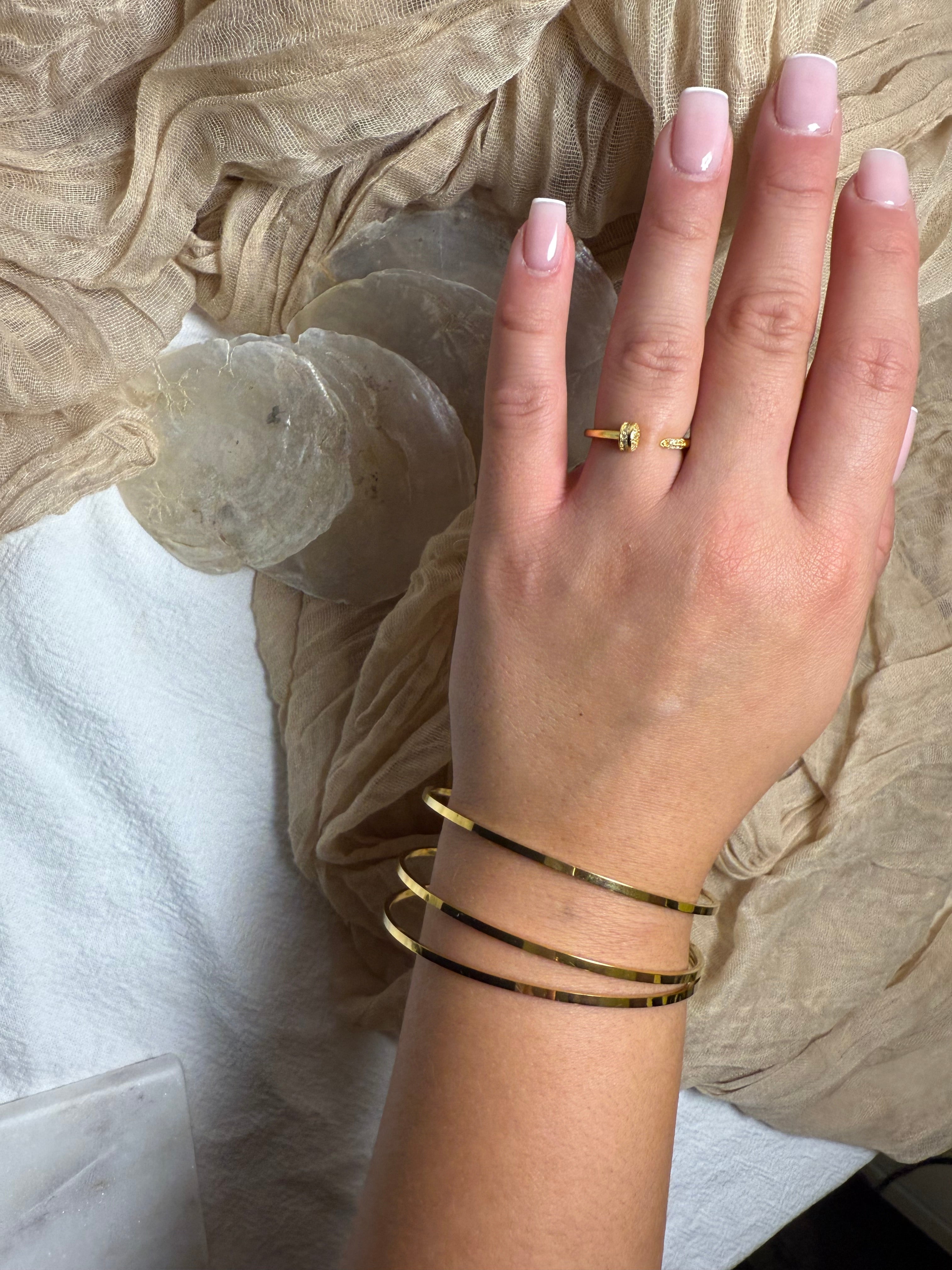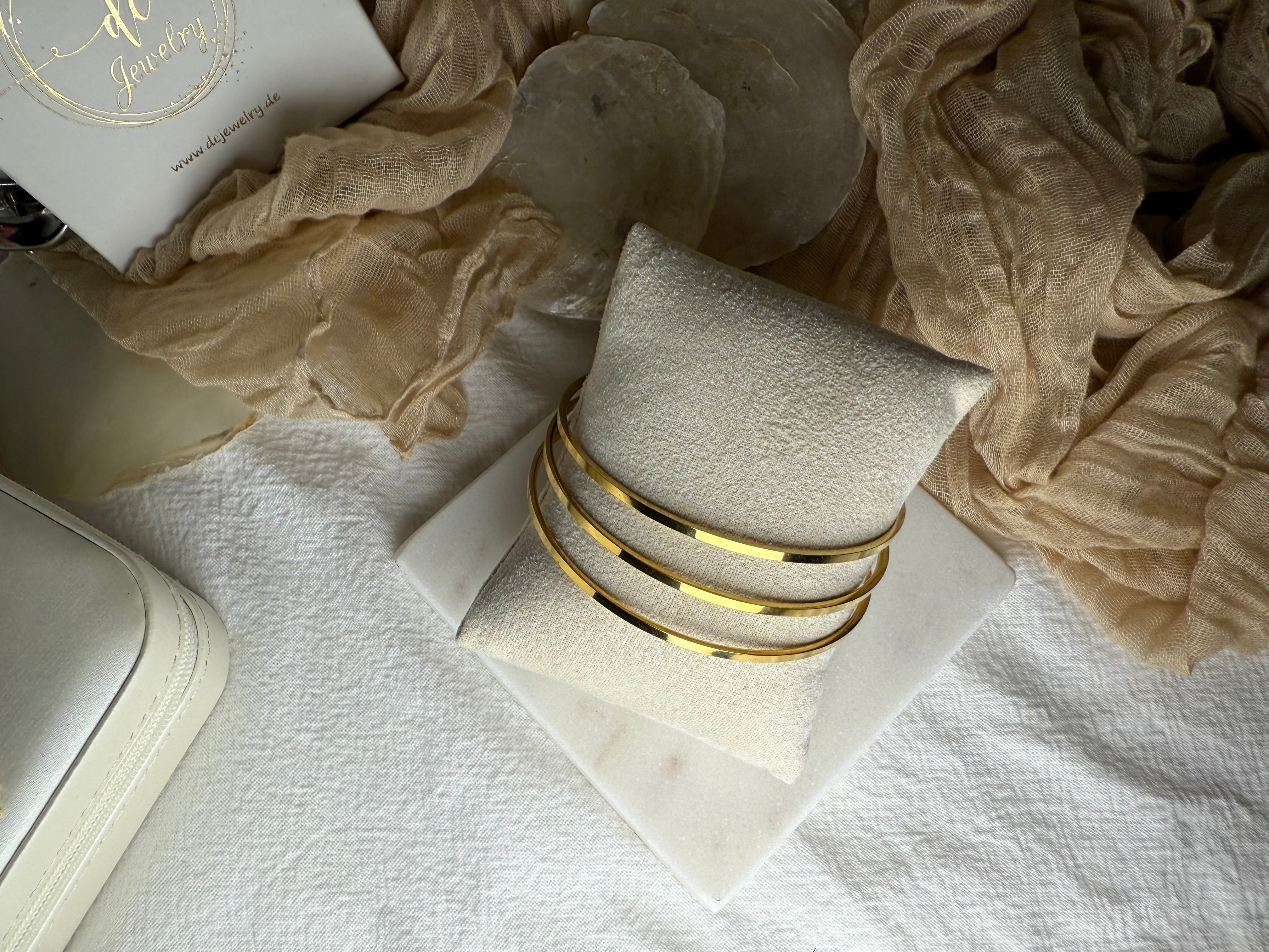 Unser Golden Trio Armreif-Set vereint zeitlose Eleganz mit moderner Beständigkeit. Die drei filigranen Armreifen sind hochwertig verarbeitet, langlebig und wasserfest – perfekt für den Alltag und besondere Anlässe.